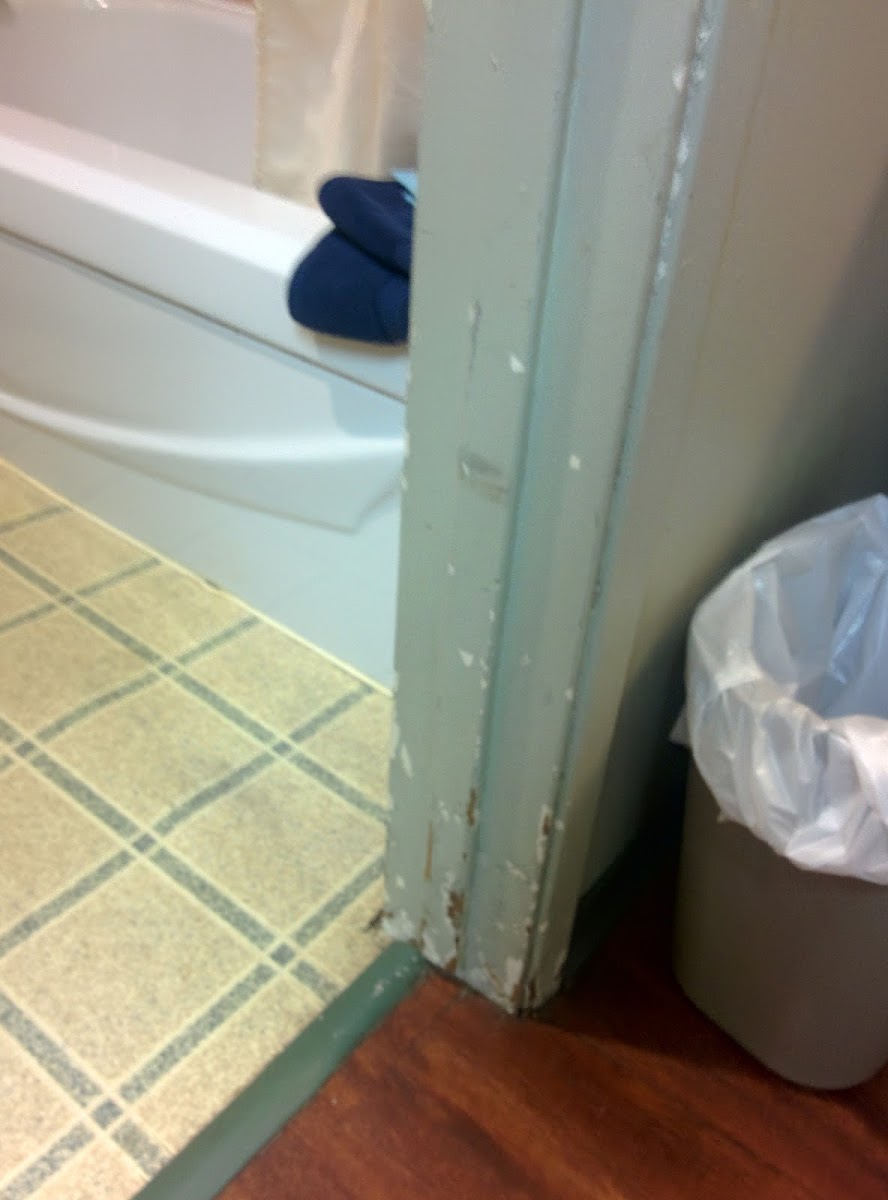 This is a decent hotel. It is kind of rough around the edges, but for it's age and price it's great. The guy at the desk is outstanding in customer service. The room was clean. Some of the renovations are kind of second rate work, and more needs to be done. The shower has an enormous amount of pressure. I felt like getting a hose and hooking it up to the shower head to wash the mud off of our vehicle. The beds in this room are double size.